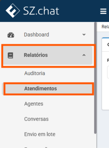 Dentro do SZ.chat, acesse a opção Relatórios > Atendimentos localizada no menu lateral: