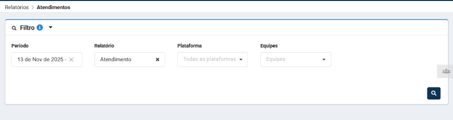 Plataforma: refere-se ao canal de atendimento utilizado, como Webchat, WhatsApp. Esse filtro permite visualizar os atendimentos realizados em cada canal específico.