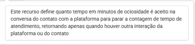 - TTP (Tempo Total Produtivo): Corresponde ao total do tempo efetivamente produtivo do atendimento do agente, considerando apenas os períodos de interação ativa entre o mesmo e o cliente. O sistema desconsidera na contagem do TTP automaticamente os intervalos de inatividade que ultrapassam a tolerância configurada. O tempo de inatividade considerado tolerável pode ser ajustado em Configuração > Aplicação > Configurações de Atendimento: