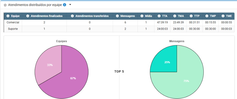 Essa situação afeta diretamente tanto a sessão de Atendimentos distribuídos por equipe quanto a sessão de Atendimentos distribuídos por agente.