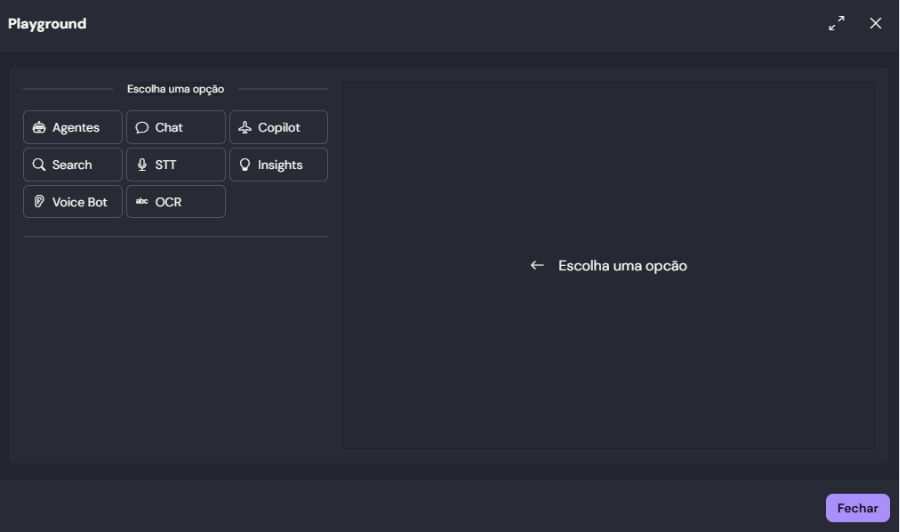 Dentro do Playground, você poderá testar qualquer recurso da plataforma: