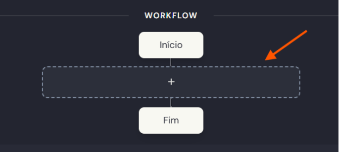 4. Após preencher todos os campos, podemos adicionar Componentes, Apps ou Utilitários ao nosso workflow clicando no ícone de + localizado entre o Início e o Fim do workflow: