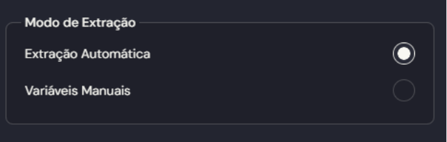 Variáveis Manuais: você define manualmente quais variáveis serão extraídas e quais informações devem ser capturadas.