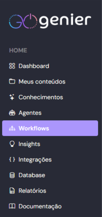 2. Acesse a opção Workflows, localizada no menu lateral: